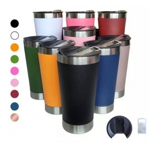 Copo térmico 473 ml com tampa e abridor de garrafas.